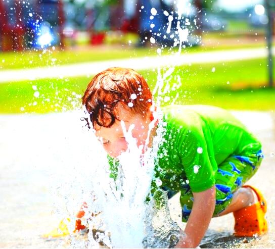 J’avais le p’tit en porte-bébé. L’eau était tiède, presque chaude. On riait fort. On s’arrosait et on se courait après. Je nous trouvais ben chanceux! On était heureux.