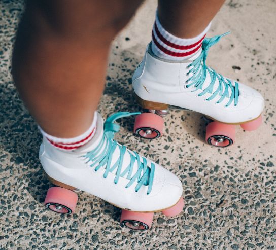 Les entraînements durent un temps durant lequel on apprend à la dure, mais avec beaucoup de tendresse (paradoxalement), l’ABC de la patente : théorie, patiner comme une queen, marcher sur ses toe stops (les tits bouts en caoutchouc en avant du patin), virer comme faut sans s’enfarger dans ses pieds pis finir la face en sang, apprendre à tomber sans se faire mal, se relever avec grâce sur une piste sans se faire écrapoutir un doigt par des roues, magasiner des bearings, comprendre le niveau de dureté des roues et dans quel contexte les utiliser, comment changer des roues, se servir de ses hanches comme d’un furieux bélier, des affaires de même.